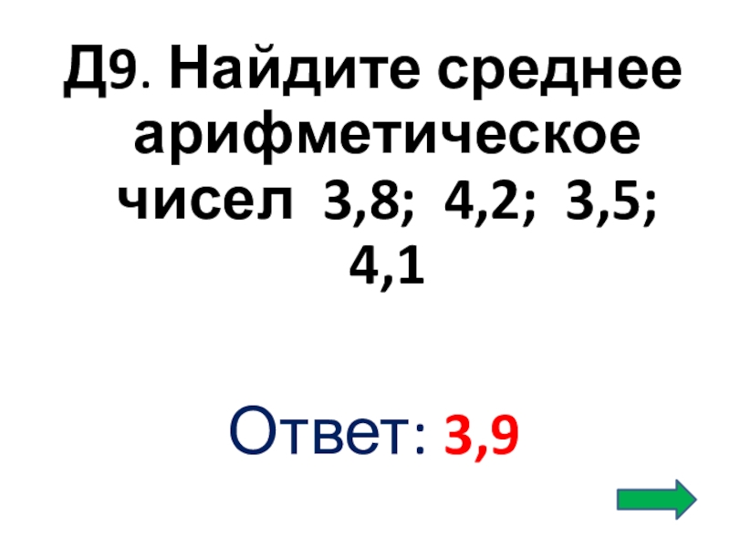 Слайд 29Д9. Найдите среднее арифметическое чисел 3,8; 4,2; 3,5; 4,1