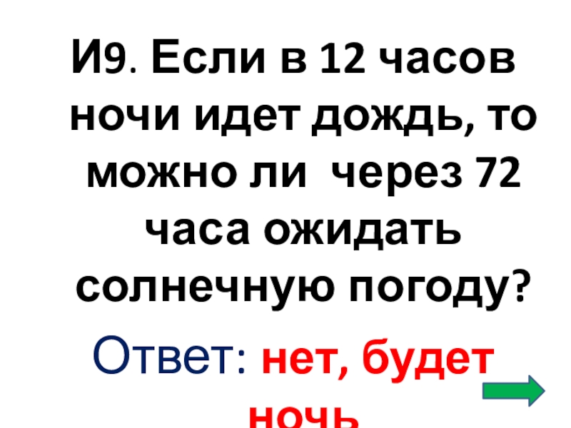 Слайд 50И9. Если в 12 часов ночи идет дождь, то можно ли