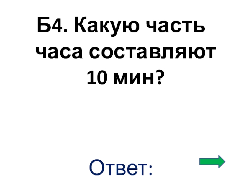 Слайд 9Б4. Какую часть часа составляют 10 мин?