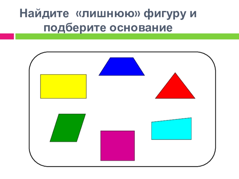 Слайд 14Найдите «лишнюю» фигуру и подберите основание