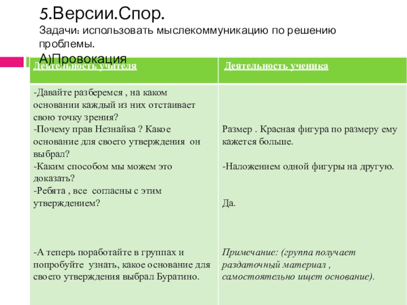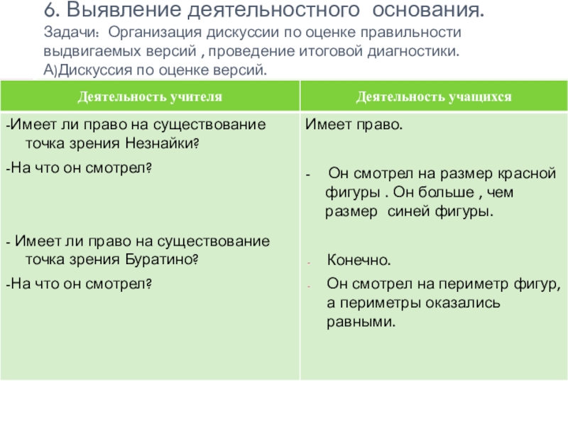 Задачи: Организация дискуссии по оценке правильности выдвигаемых версий