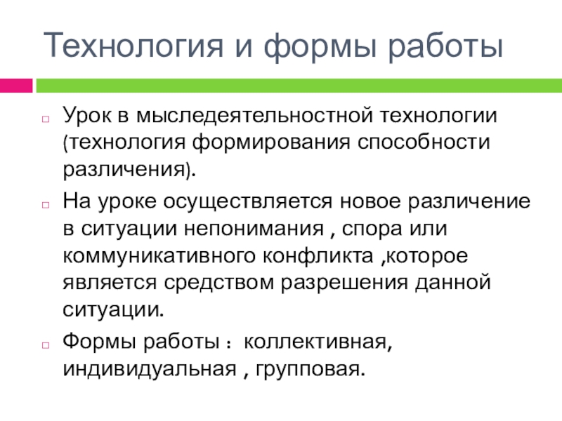 Урок в мыследеятельностной технологии (технология формирования способности различения).