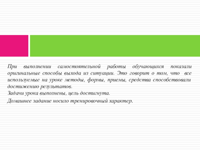 Слайд 49При выполнении самостоятельной работы обучающихся показали оригинальные способы выхода из ситуации.
