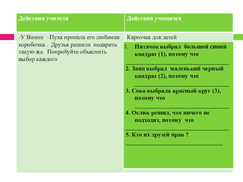 Этап фиксации противоречий способствовал тому, что дети сделали вывод , что нельзя сравнивать разное.