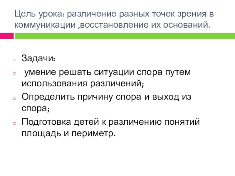 Слайд 3Цель урока: различение разных точек зрения в коммуникации ,восстановление их оснований.