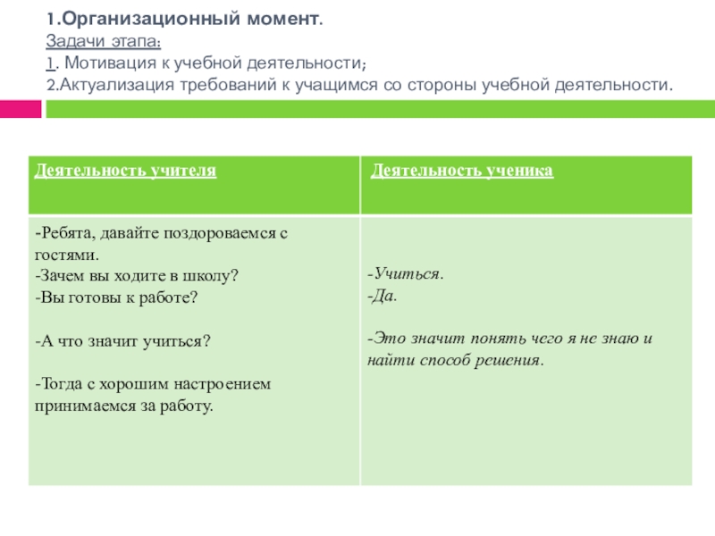 было организовано повторение знаний обучающихся на этапе актуализации знаний детей, которое позволило обучающимся поставить задачу урока,