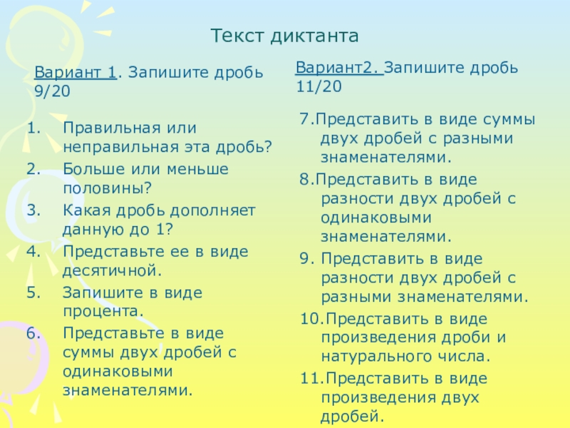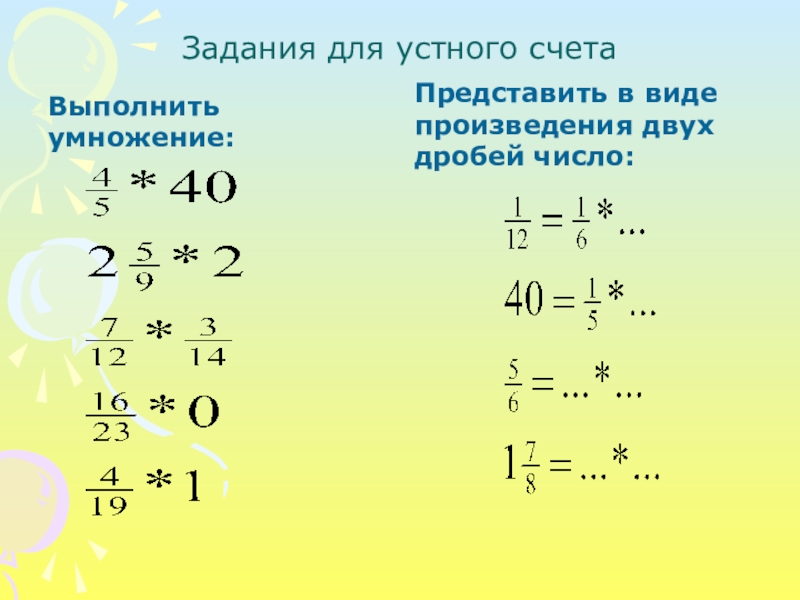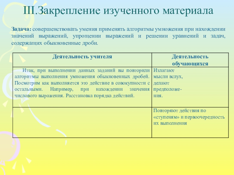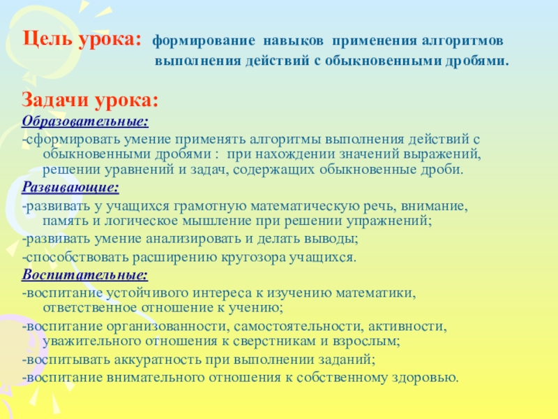 Цель урока: формирование навыков применения алгоритмов выполнения действий с обыкновенными дробями.