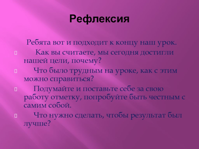 Подумайте и поставьте себе за свою работу отметку, попробуйте быть честным с самим собой.