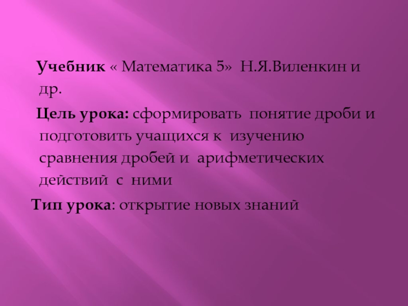 Слайд 2 Учебник « Математика 5» Н.Я.Виленкин и др.