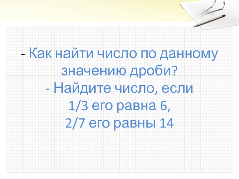 - Как найти число по данному значению дроби? - Найдите число, если 1/3 его равна 6,