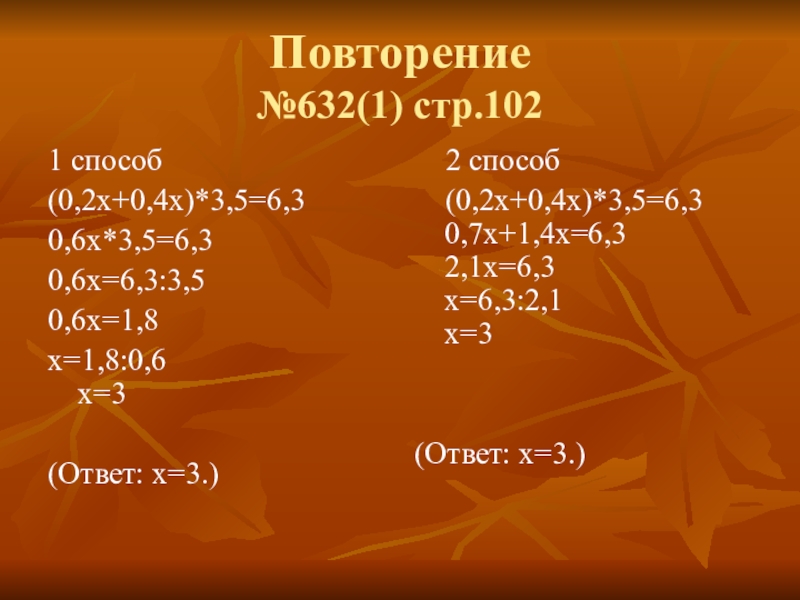 (0,2х+0,4х)*3,5=6,3 0,7х+1,4х=6,3 2,1х=6,3 х=6,3:2,1 х=3