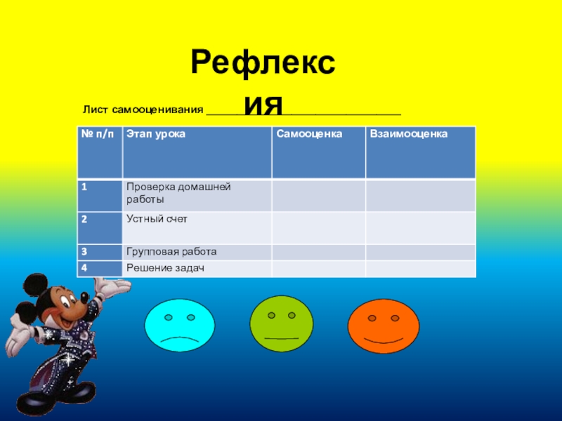 Лист самооценивания ________________________________   Рефлексия