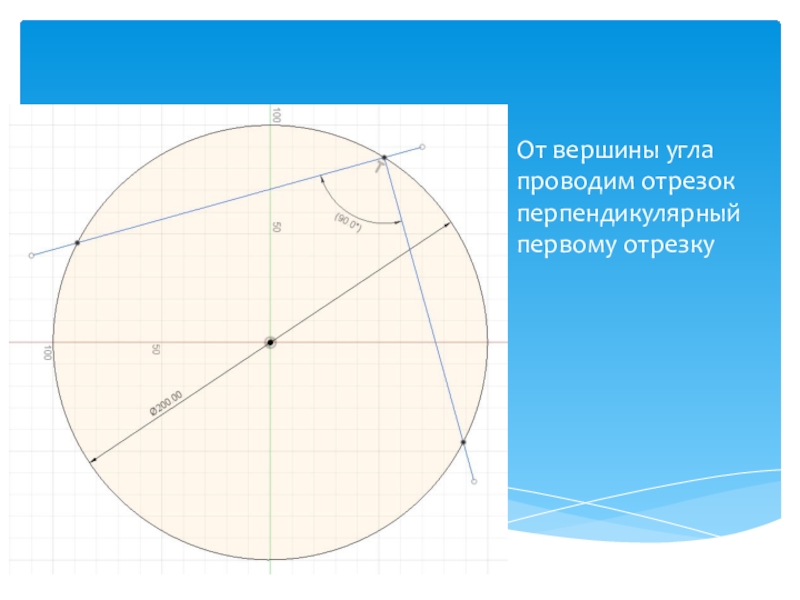 Слайд 9От вершины угла проводим отрезок перпендикулярный первому отрезку