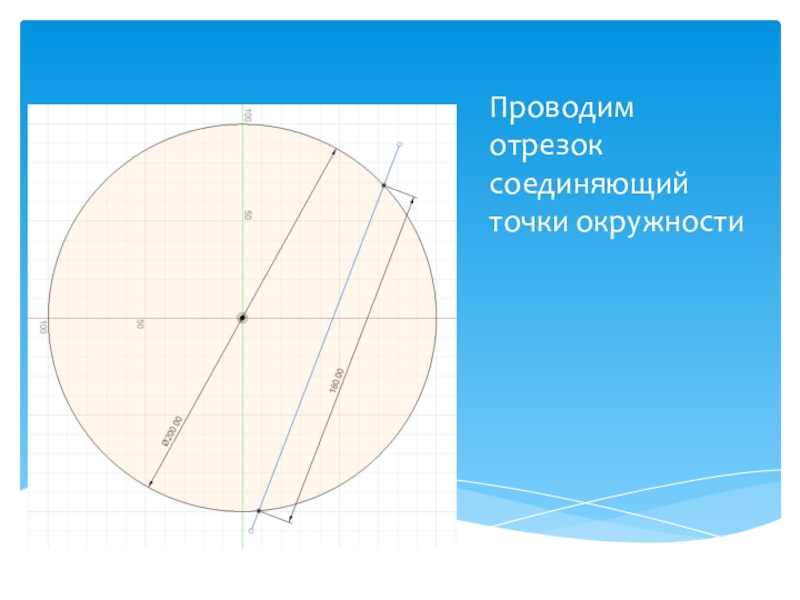 Слайд 3Проводим отрезок соединяющий точки окружности