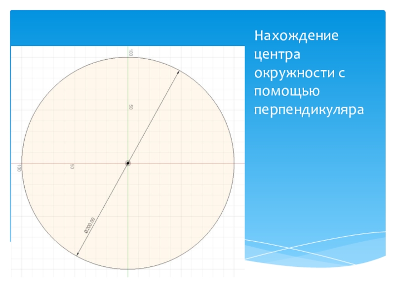 Слайд 2Нахождение центра окружности с помощью перпендикуляра
