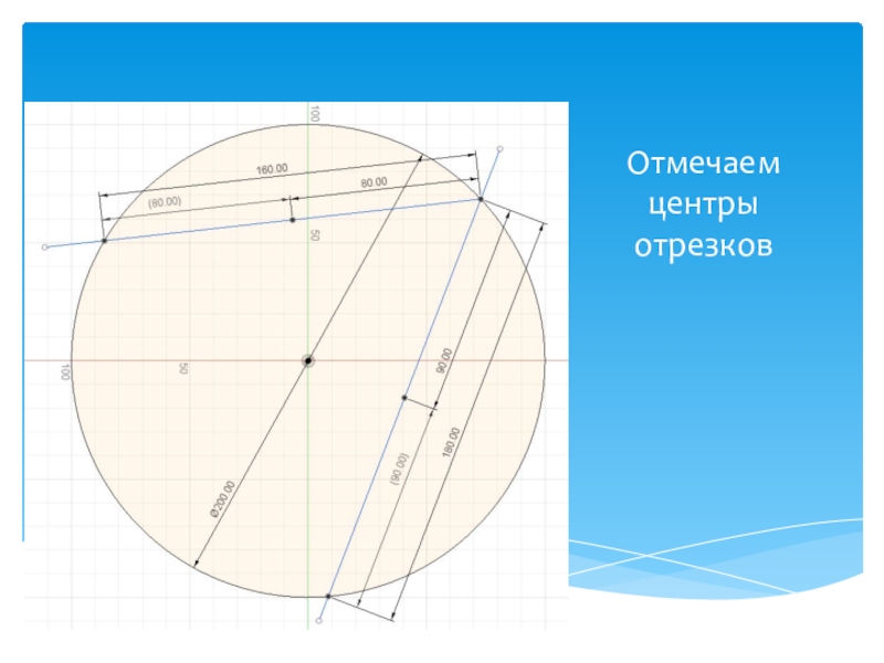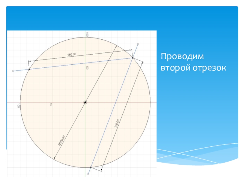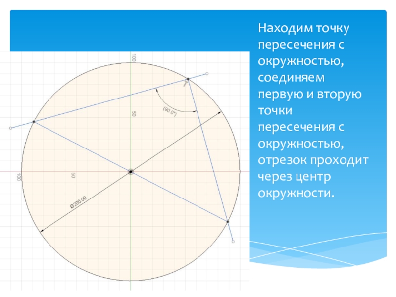 Слайд 10Находим точку пересечения с окружностью, соединяем первую и вторую точки пересечения