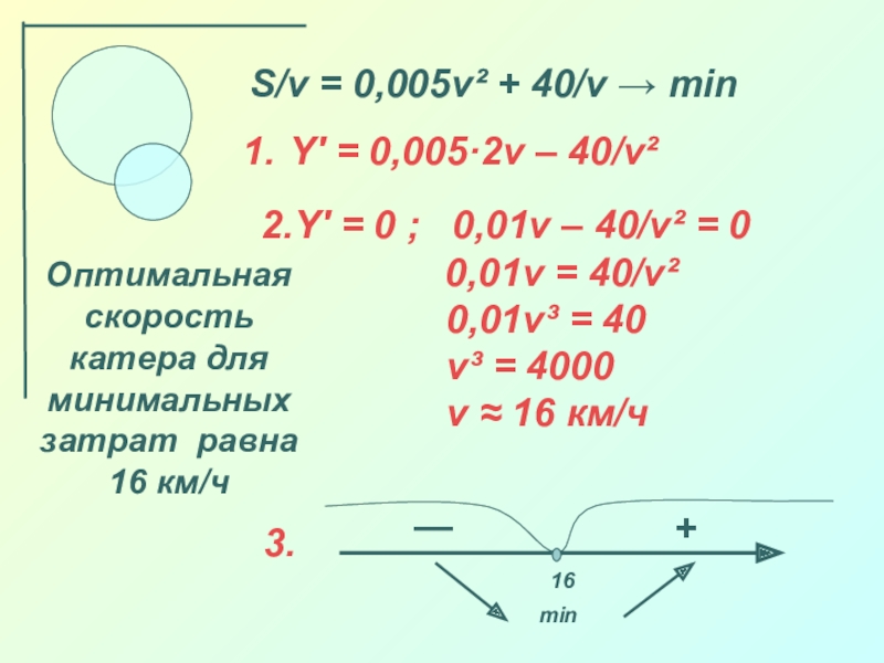 2.Y′ = 0 ; 0,01v – 40/v² = 0