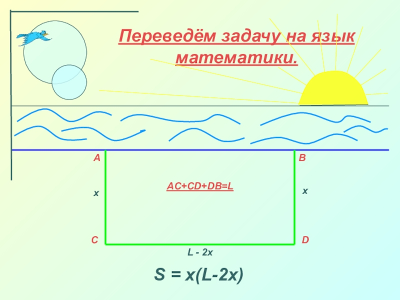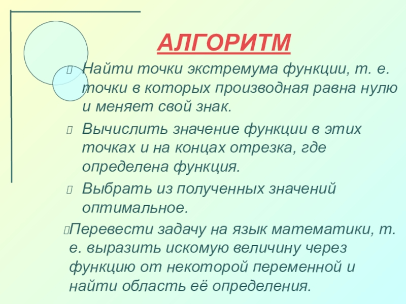 Перевести задачу на язык математики, т. е. выразить искомую величину через функцию от некоторой переменной и найти область её определения.
