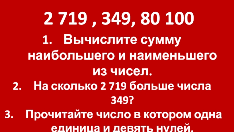 Вычислите сумму наибольшего и наименьшего из чисел: