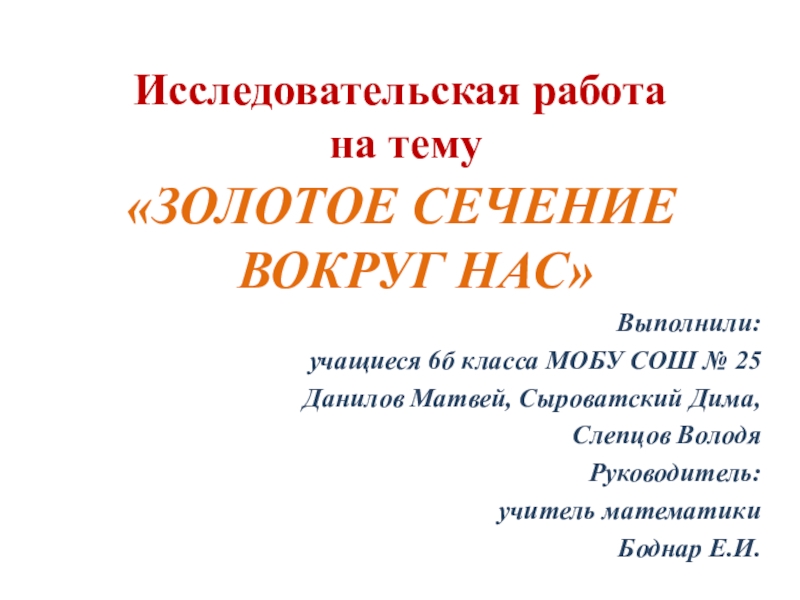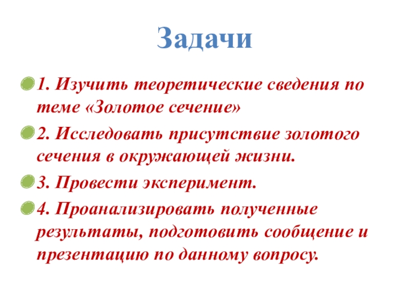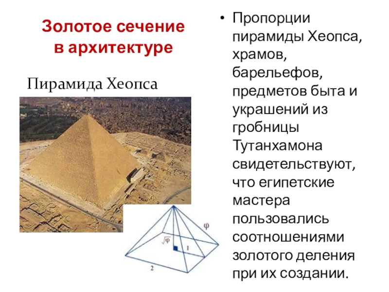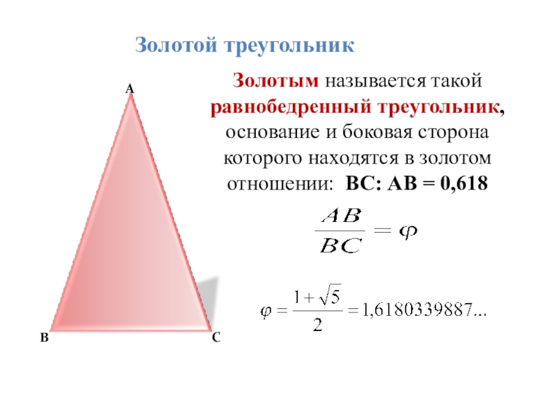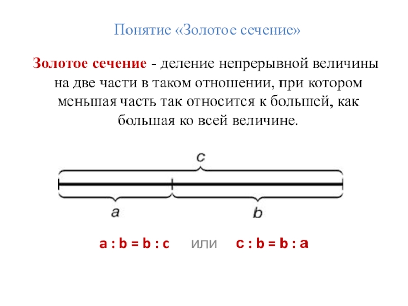 Золотое сечение - деление непрерывной величины на две части в таком отношении, при котором меньшая часть так относится к большей, как большая ко всей величине.