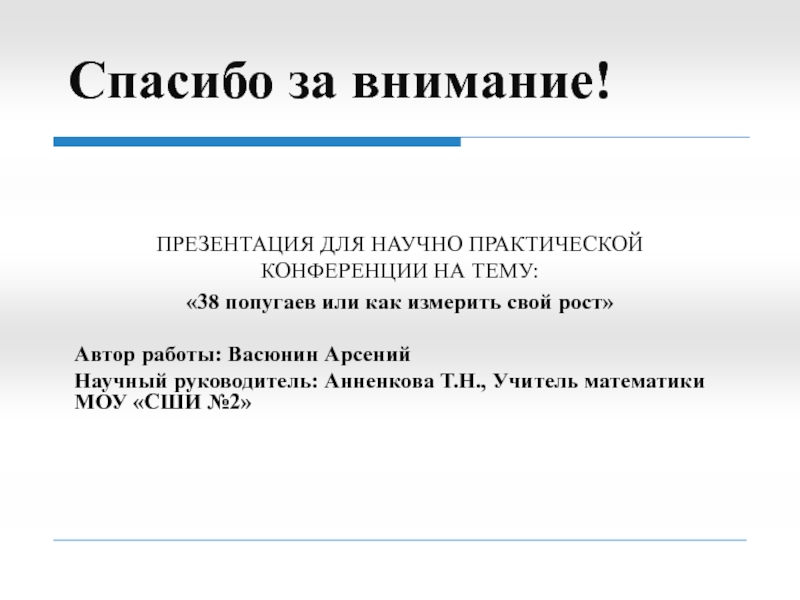 Научный руководитель: Анненкова Т.Н., учитель математики МОУ «СШИ №2»