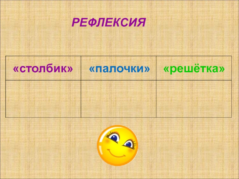 РЕФЛЕКСИЯ«столбик»«палочки»«решётка»
