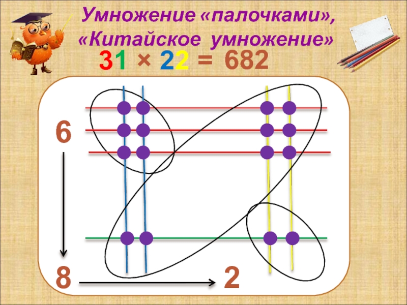 231 × 22 =86682 Умножение «палочками»,  «Китайское умножение»