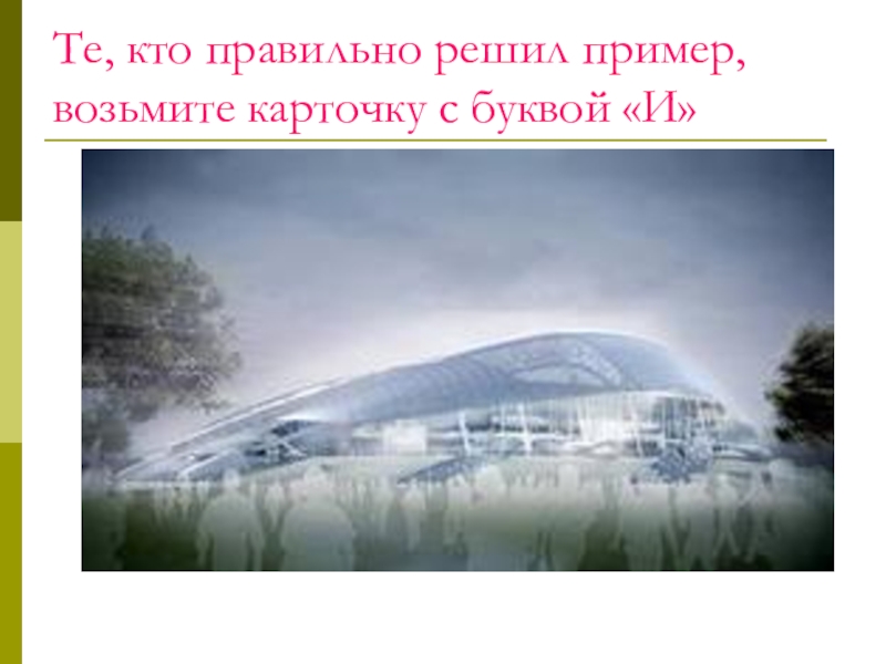 Слайд 25Те, кто правильно решил пример, возьмите карточку с буквой «И»
