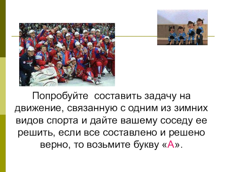 спорта и дайте вашему соседу ее решить, если все составлено и решено верно, то возьмите букву «А».