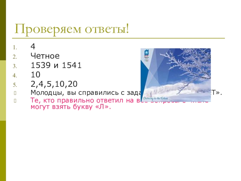 кто правильно ответил на все вопросы о числе могут взять букву «Л».