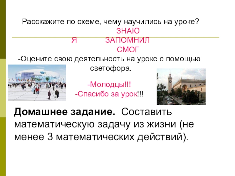 Домашнее задание. Составить математическую задачу из жизни (не менее 3 математических действий).