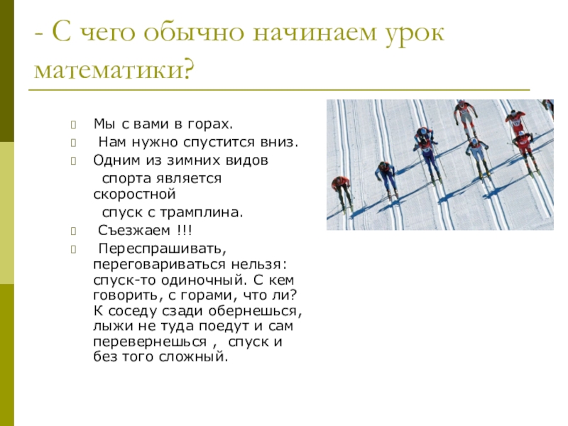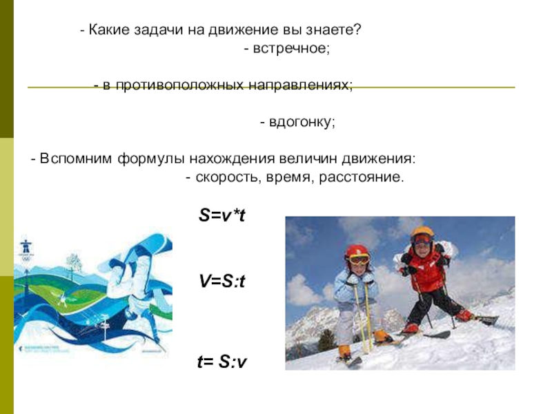 Попробуйте составить задачу на движение, связанную с одним из зимних видов
