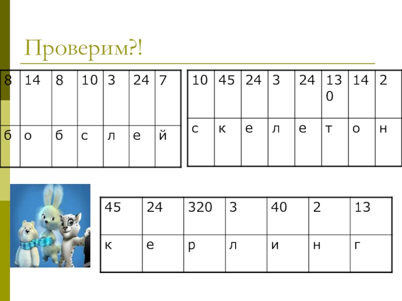 Слайд 7- Итак, проверяем. Я открываю результаты по одному.