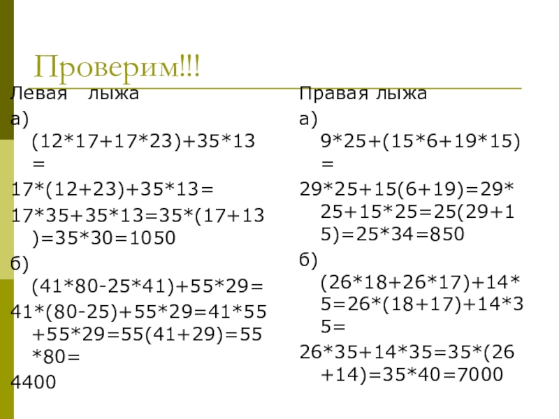 б) (26*18+26*17)+14*5=26*(18+17)+14*35=