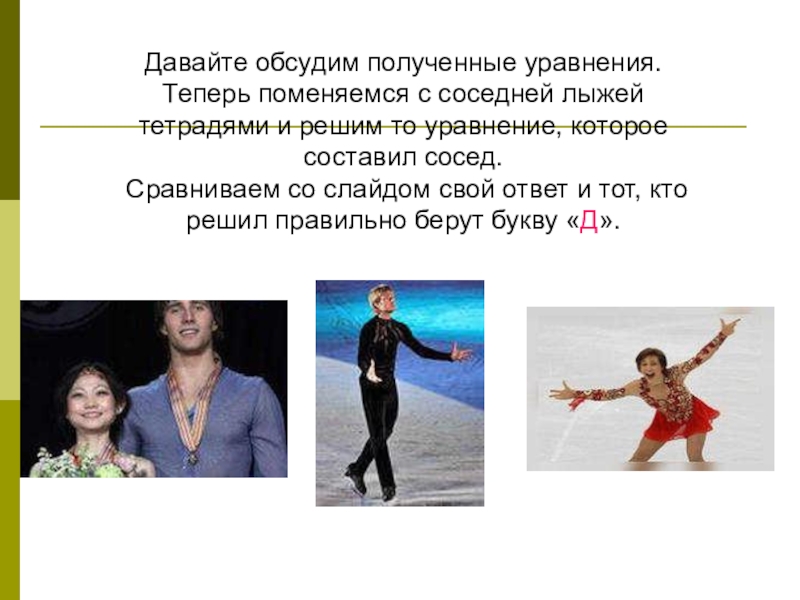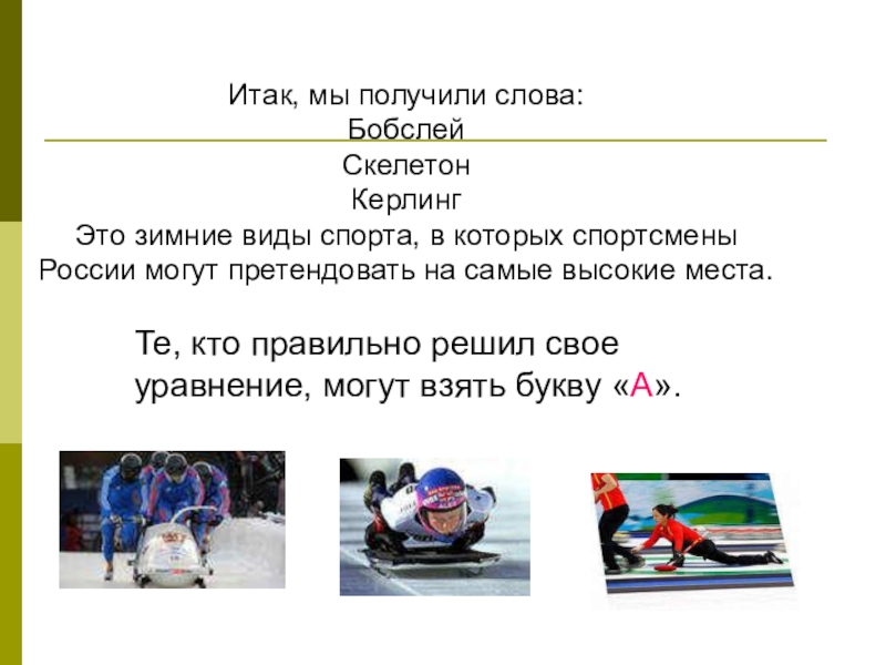 Те, кто правильно решил свое уравнение, могут взять букву «А».