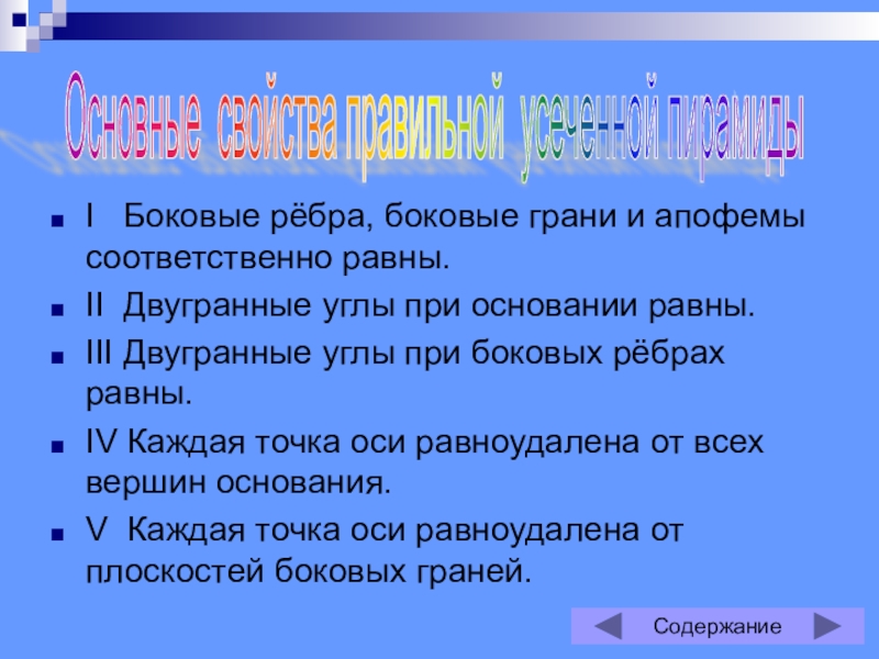 Основные свойства правильной усеченной пирамиды