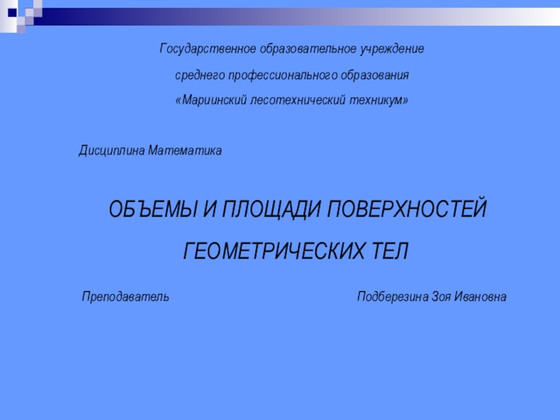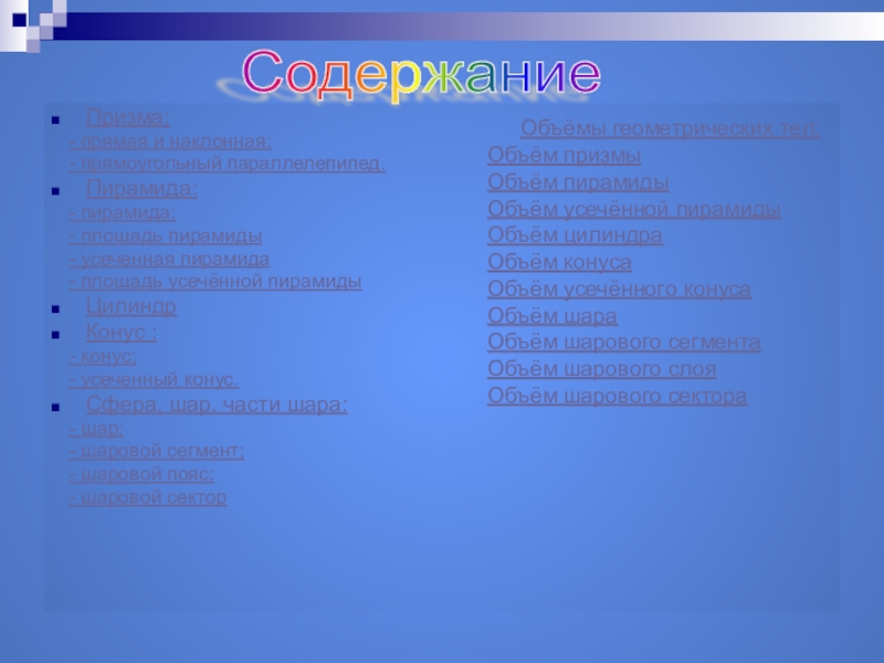 Объёмы геометрических тел: