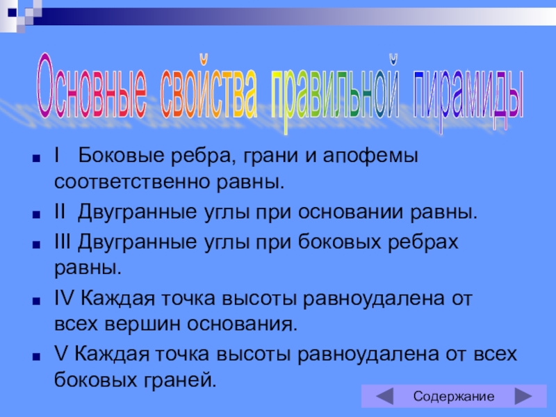 Основные свойства правильной пирамиды