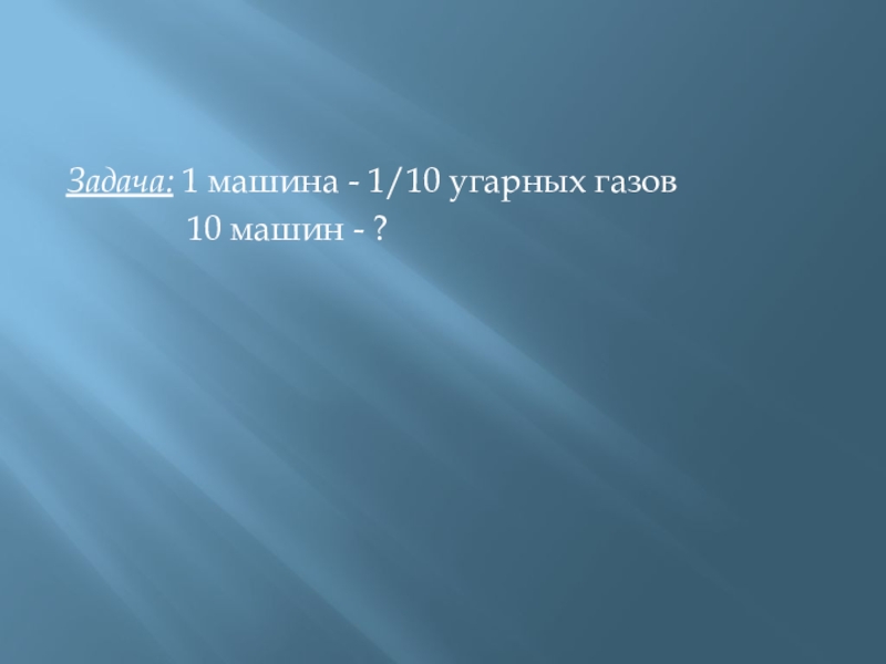 Слайд 7Задача: 1 машина - 1/10 угарных газов