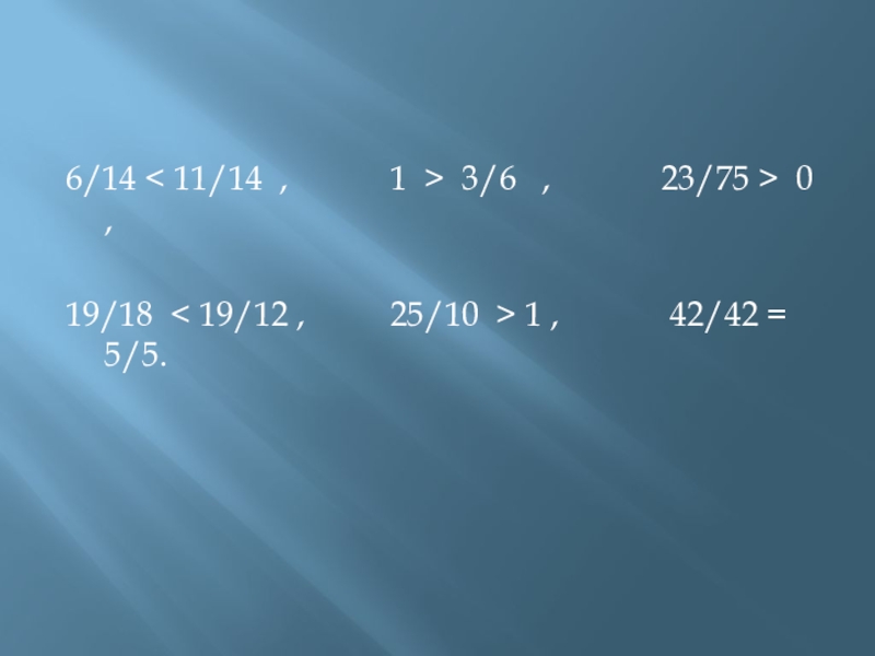 19/18 < 19/12 , 25/10 > 1 , 42/42 = 5/5.
