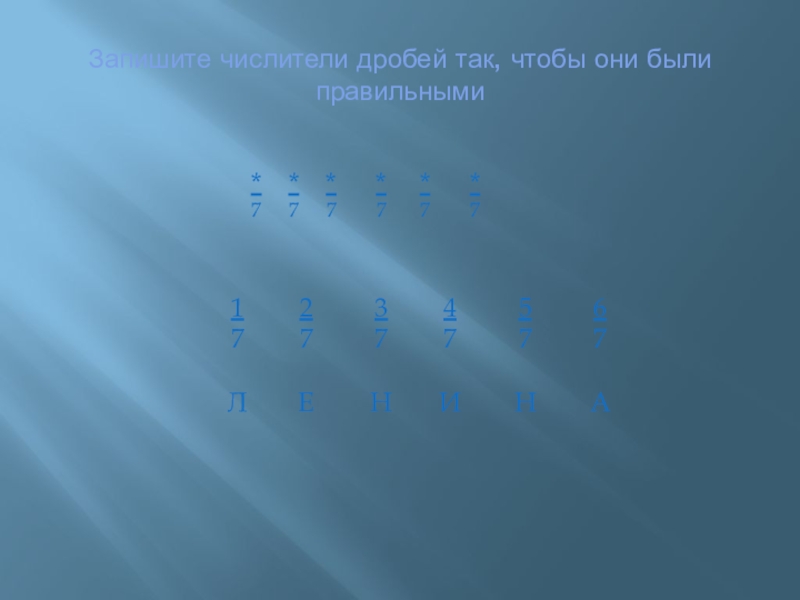 Запишите числители дробей так, чтобы они были правильными*7*7*7*7*7*717л27е37н47и57н67а