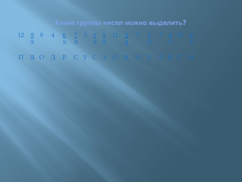 Какие группы чисел можно выделить? 4Д99Я12П69Р8О79С3У39С19Э89И10Г49К7Р59У5О29К11О