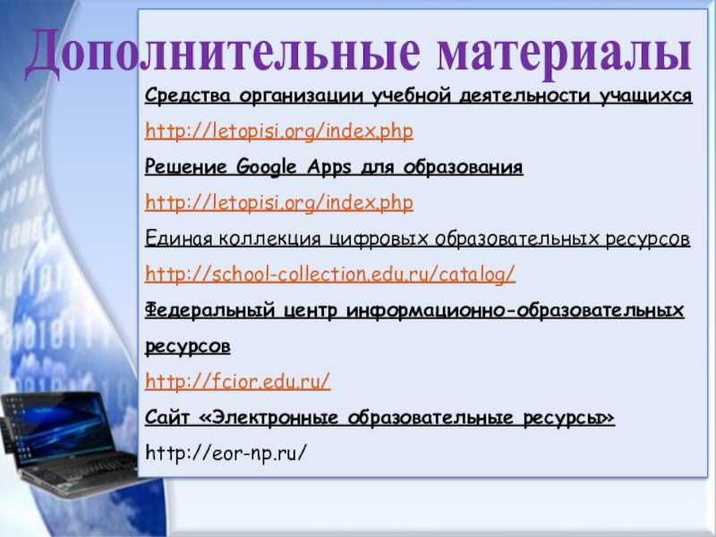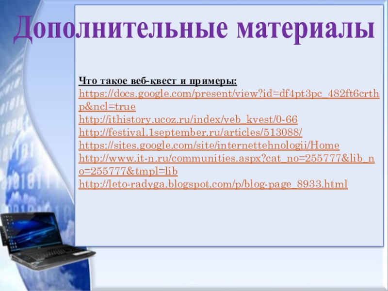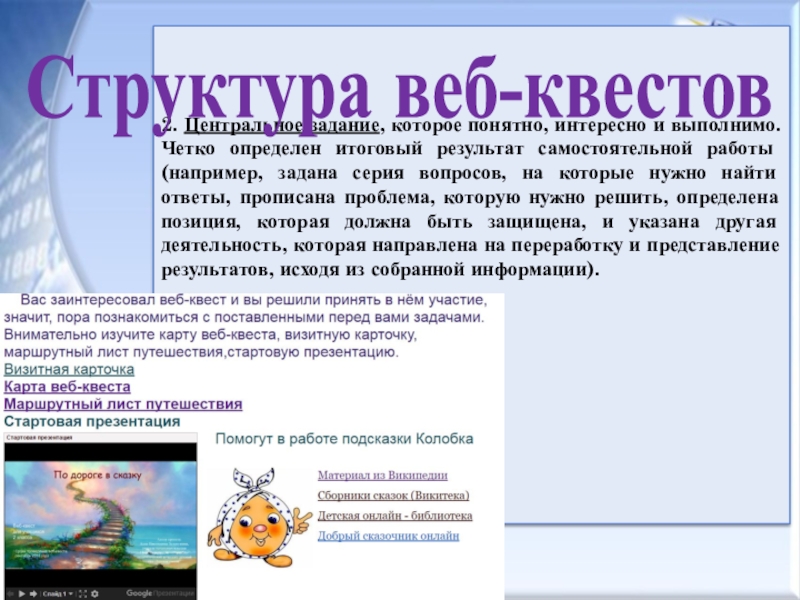 Это сайт презентаций, где можно хранить и обмениваться своими презентациями, докладами, проектами, шаблонами в формате PowerPoint с другими пользователями. Мы помогаем школьникам, студентам, учителям, преподавателям хранить и обмениваться учебными материалами.