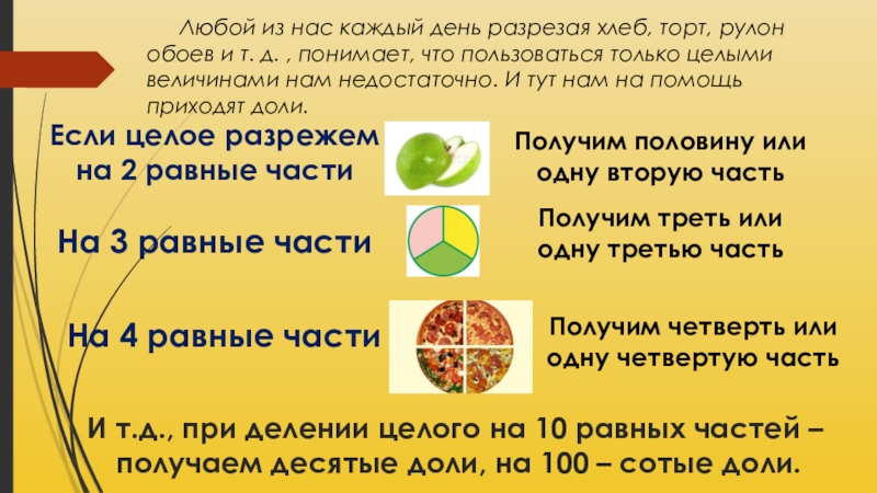 И т.д., при делении целого на 10 равных частей –