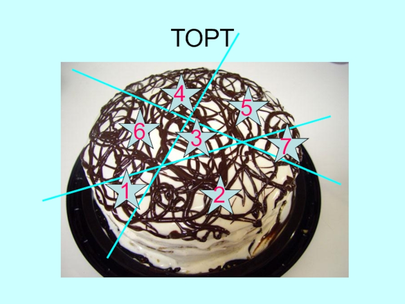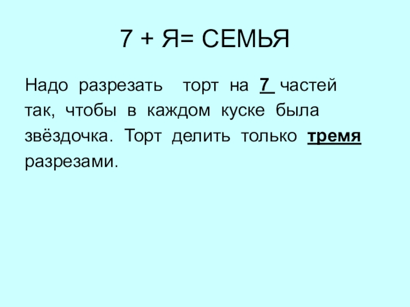 7 + Я= СЕМЬЯНадо разрезать  торт на 7 частейтак, чтобы в каждом куске былазвёздочка. Торт делить