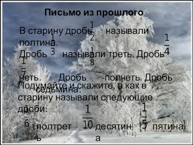 Подумайте и скажите, а как в старину называли следующие дроби:
