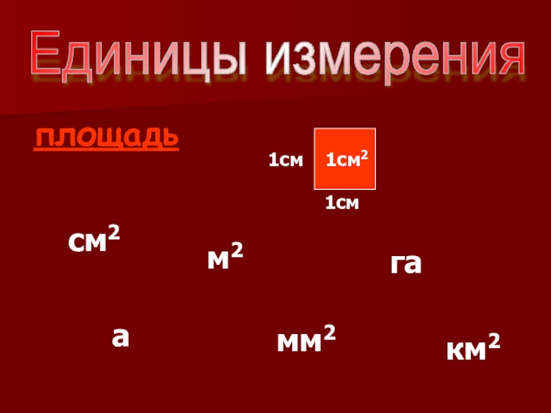 площадьЕдиницы измерения 1см1см 1см2см2мм2м2агакм2