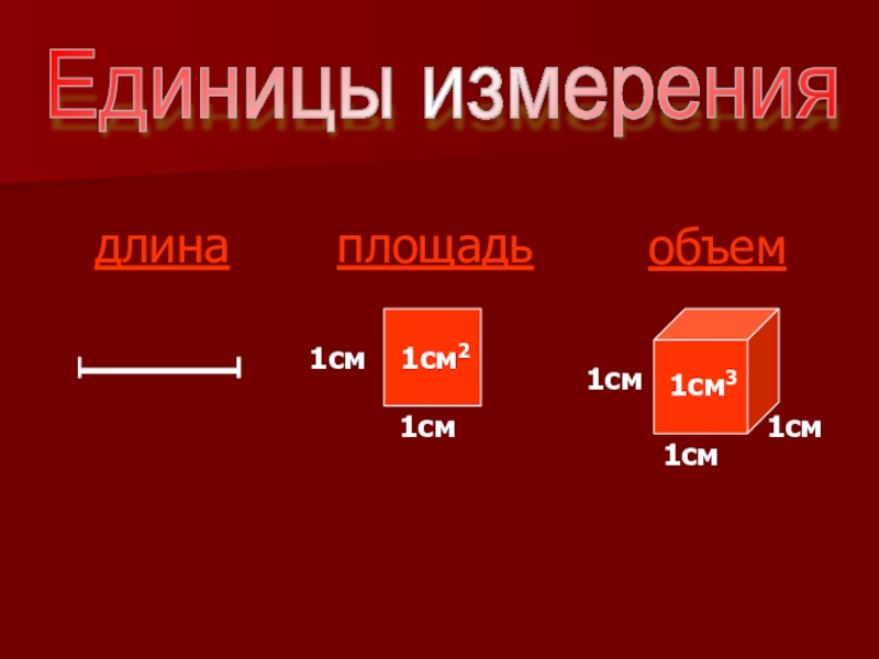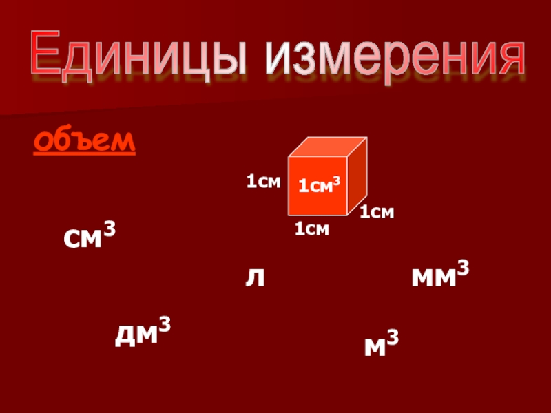 объемЕдиницы измерения 1см1см1см1см3см3м3мм3дм3л
