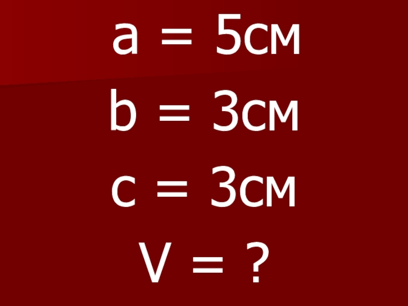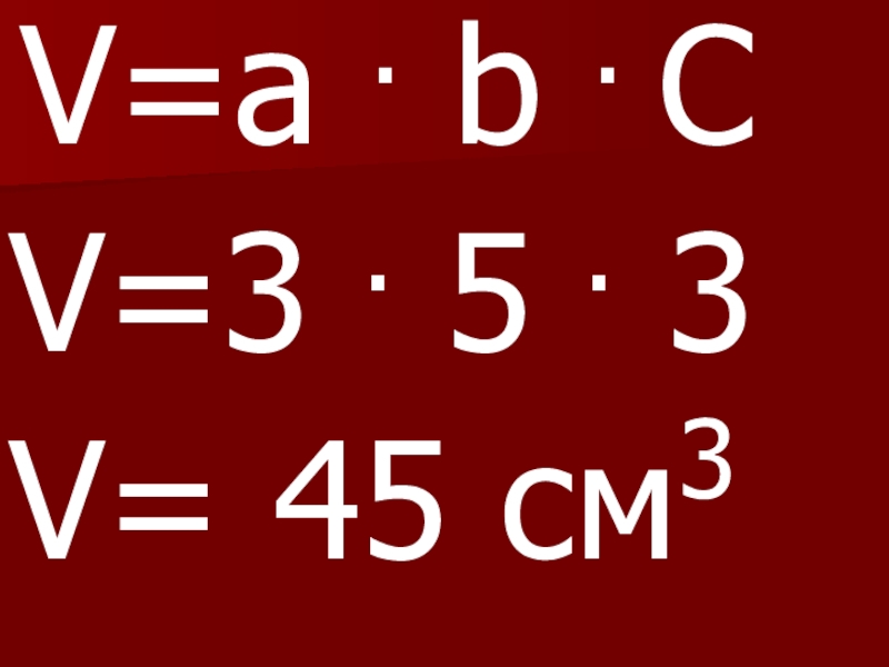 V=a . b . CV=3 . 5 . 3V= 45 см3