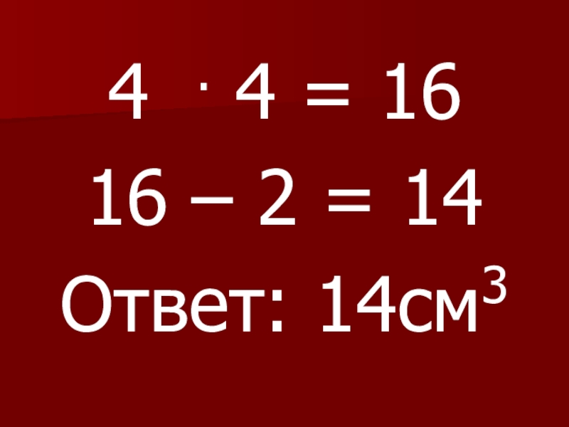 4 . 4 = 1616 – 2 = 14Ответ: 14см3